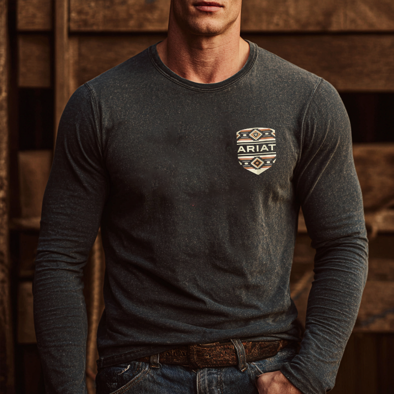 Stylish Long Sleeve Graphic Tee For Men - Perfect For Casual And Outdoor Adventures
