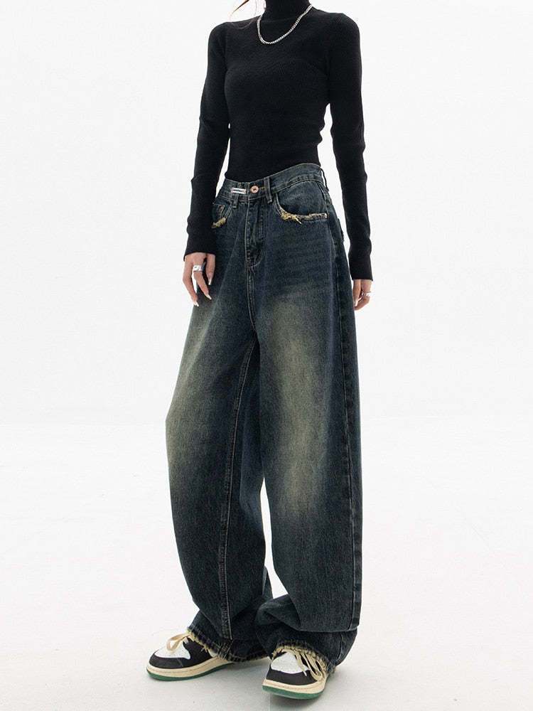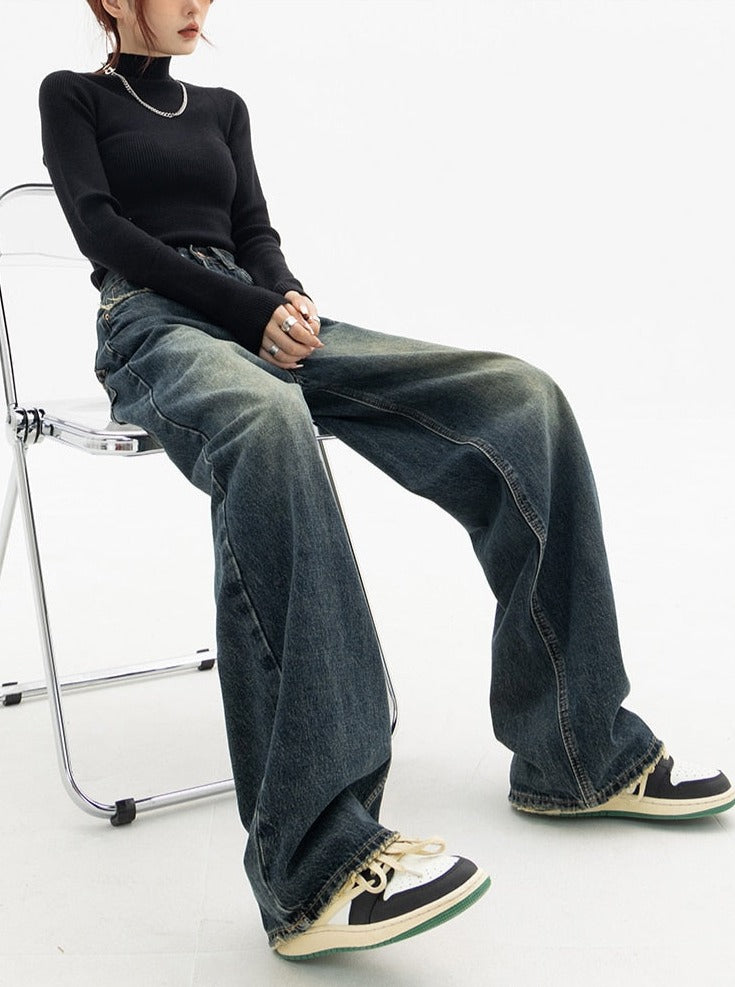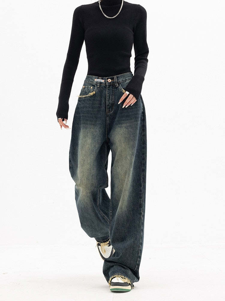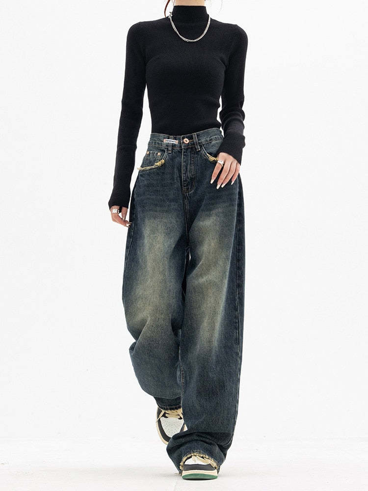 Our vintage jeans offer a high waist with a deep blue color giving a feeling mixed with vintage dark academia style. Comes with a loose fit and regular thickness to make sure you stay comfortable and cozy. Get prepared for fall and winter by adding these jeans to your collection.