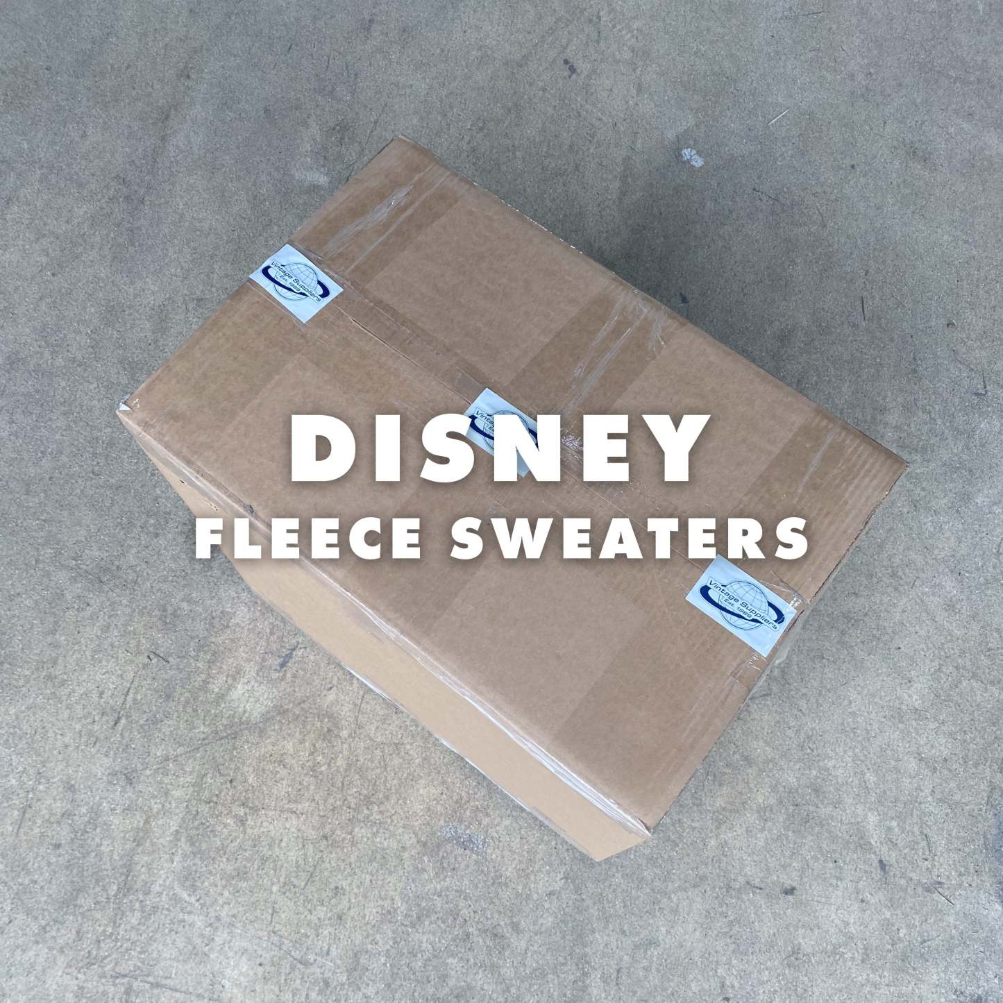 This box contains 30 Disney fleece jackets and sweaters, all either from the Disney brand or featuring Disney characters.