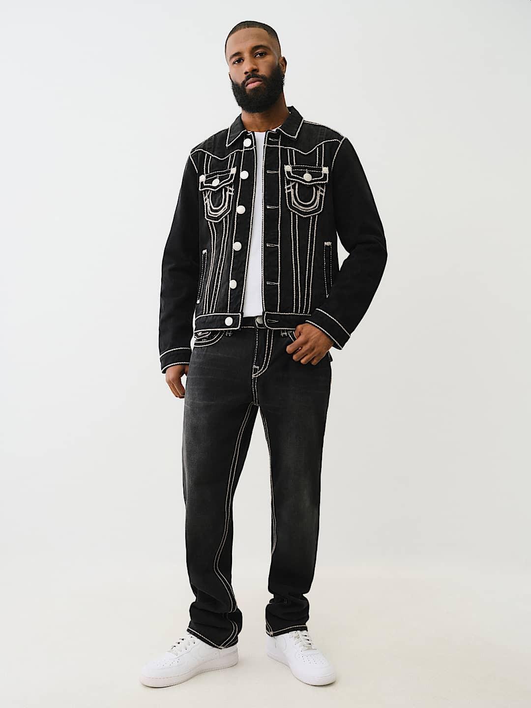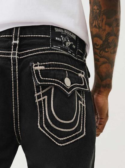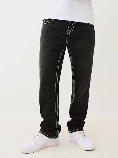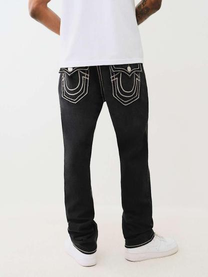 True Religion Men ROPE STITCH Ricky Straight Fit Pure Cotton Mid Rise Jeans
