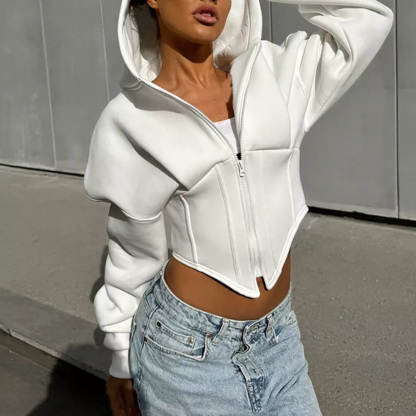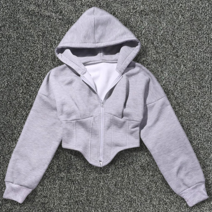 Women's New Fall And Winter Casual Zipper Long-sleeved Hooded Cardigan Short Jacket